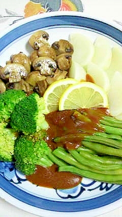 茹で野菜と炒め野菜にデミグラスソースを添えて レシピ 作り方 By 2727椿 楽天レシピ